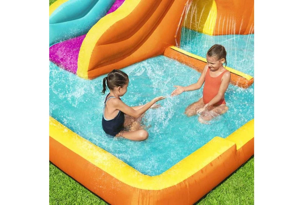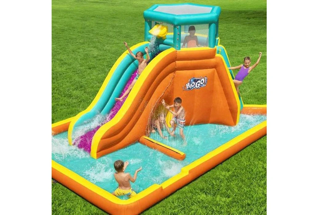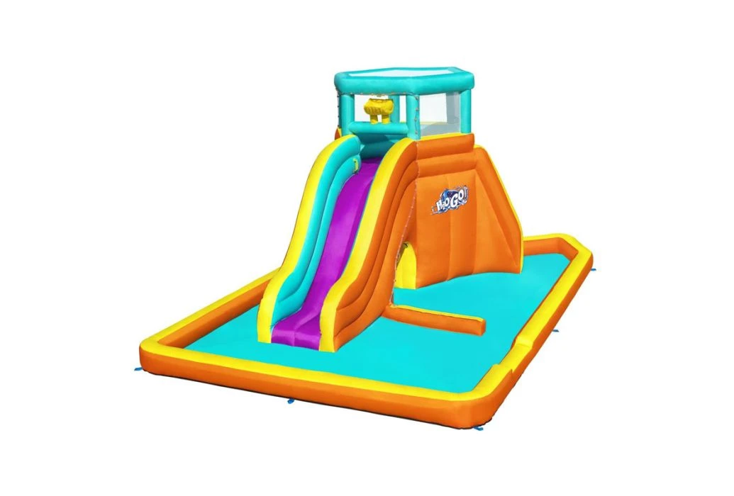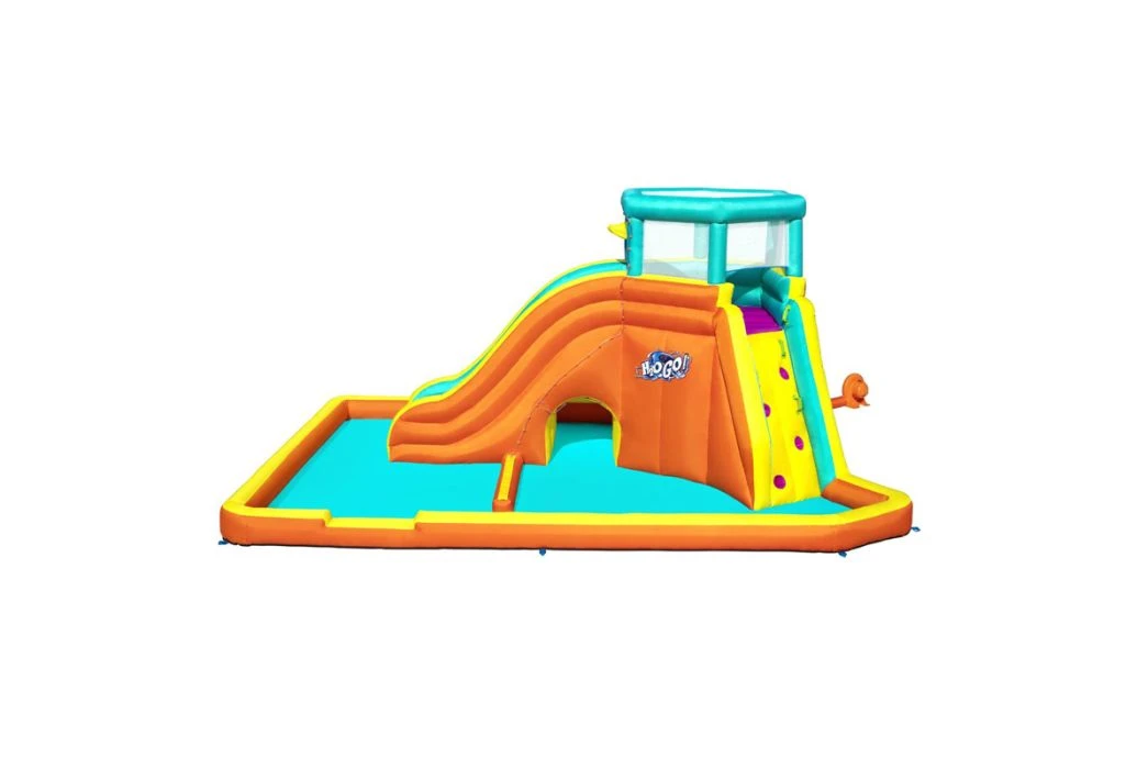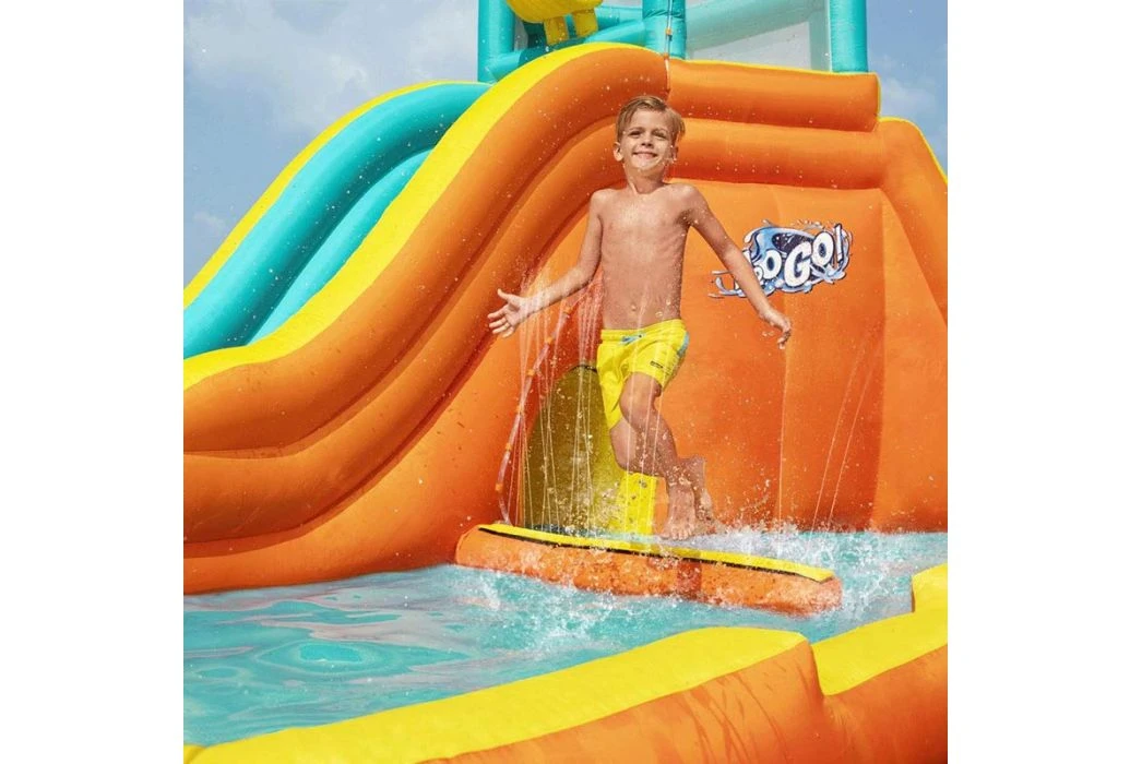Het Bestway H2OGO! Tidal Tower waterpark is een groot, opblaasbaar waterpark met enorm veel mogelijkheden voor uren speelplezier. Dit opblaasbare waterpark biedt ruimte voor maximaal 6 kinderen en heeft een glijbaan met een kiepemmer, sprinkler muur, kruiptunnel en een waterbassin. De glijbaan kun je bereiken via de klimwand aan de achterkant. Er wordt een blower meegeleverd waardoor het water binnen 2 minuten opgeblazen wordt.