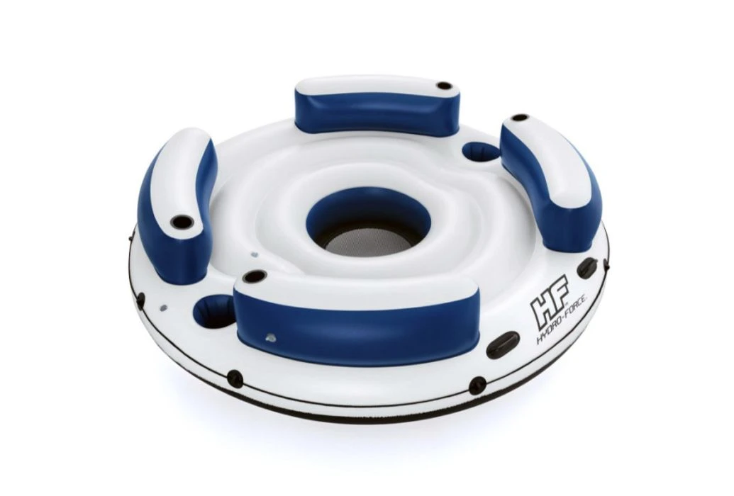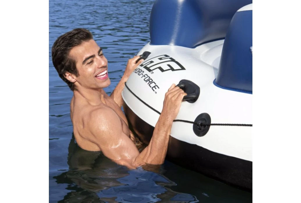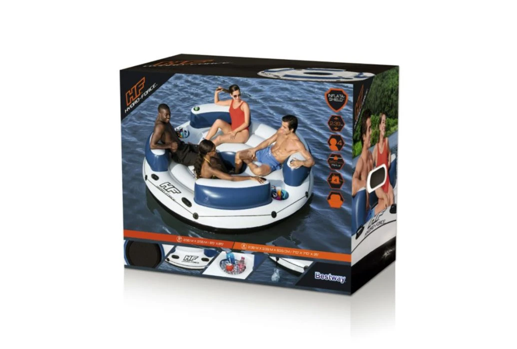 De Bestway Hydro Force Lazy Dayz is een drijvend eiland welke geschikt is voor 4 personen. De loungeband is uitgerust met 4 rugleuningen met daarin ingebouwde bekerhouders, 2 handvaten, 2 bewaarvakken en een grijpkoord rondom de band.