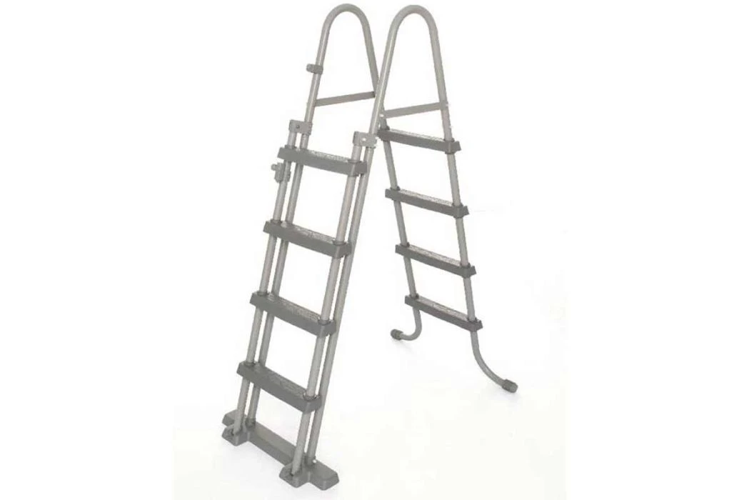 De zwembadtrap van Bestway is gemaakt van sterk, roestbestendig . Deze degelijke kwaliteitstrap is eenvoudig te plaatsen in je opbouwzwembad.