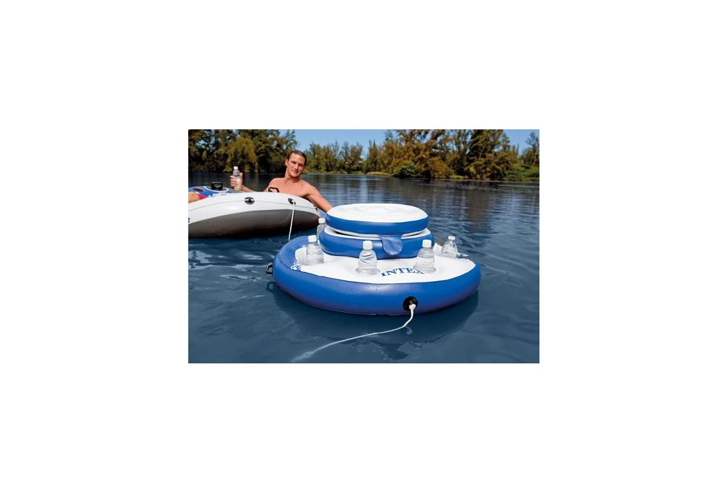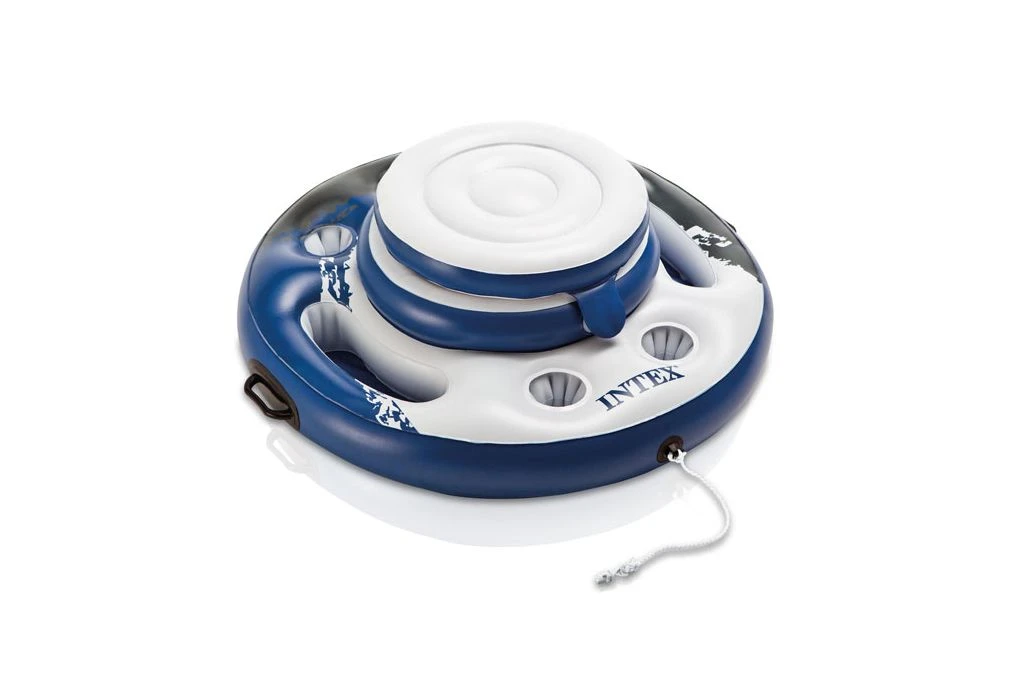 De Mega Chill kan vast worden gemaakt aan opblaasbare loungestoelen van de River Run-lijn van Intex en heeft 3 handvaten. De ideale koelbox voor op het water.