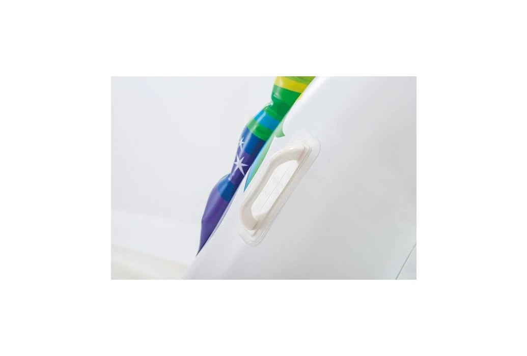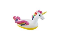 Gaaf opblaasbaar speelgoed van Intex in de vorm van een eenhoorn. Deze eenhoorn is echt leuk om mee te spelen bij het zwembad of op het strand. Dit opblaas speelgoed is geschikt voor kinderen vanaf 3 jaar en heeft twee handvaten op de rug om goed vast te houden. Super gaaf voor de kids om mee te spelen.