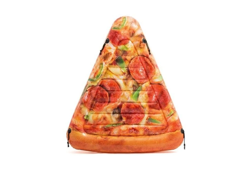 Heerlijk drijven op een pizzapunt? Deze opblaasbare pizzapunt is een echte eye-catcher en een grote hit deze zomer! De pizzapunt ziet er zeer realistisch uit en is extra leuk met familie en vrienden: maak meerdere pizzapunten aan elkaar vast met de 4 bevestigingspunten om een complete pizza te creëren!