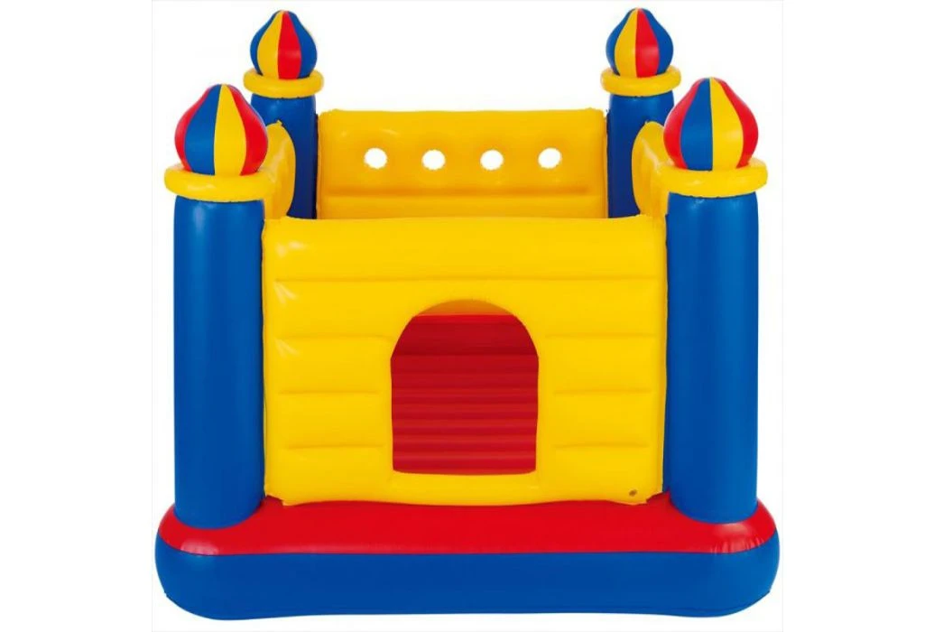 Een opblaasbare trampoline hebben je kinderen urenlang plezier van. Dit vrolijke en kleurijke kasteel is voor kinderen van 3 tot 6 jaar. Je kan het kasteel in de woonkamer plaatsen maar ook in de tuin. Het maximale belastbare gewicht is 54 kilo en er mogen maximaal 2 personen erop. De trampoline beschikt over een zachte bodem.
