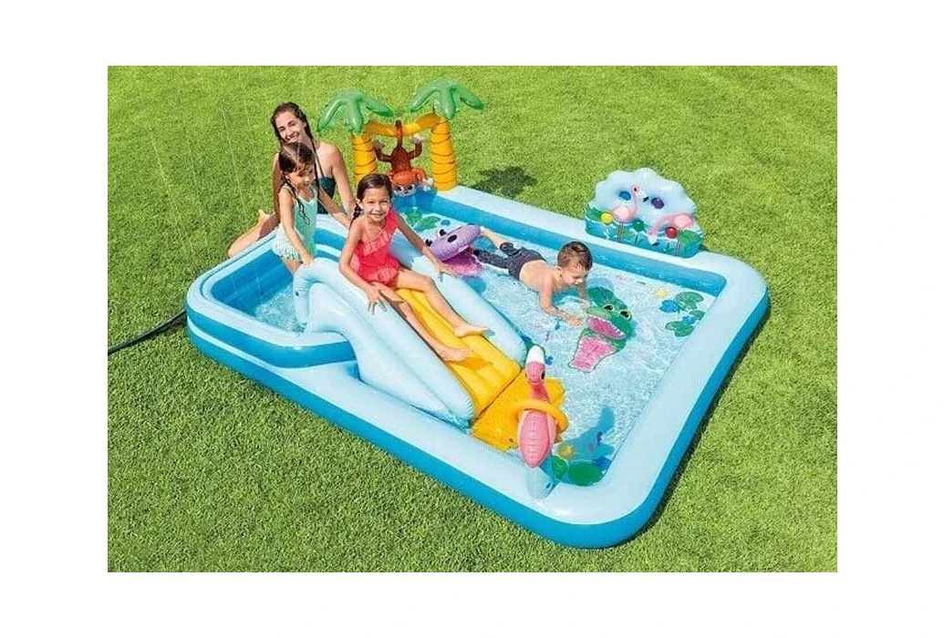Dit leuke speelcentrum heeft een afmeting van 257 x 215 x 84 cm. In het kleine badje gaat 57 liter water. Het speelzwembad wordt compleet geleverd met glijbaan, waterval, krokodil, aap, flamingo én speeltjes. Dit bad is geschikt voor jongens en meisjes met een leeftijd vanaf 3 jaar en het is ook nog voorzien van leuke sproeiers. Dat wordt genieten!