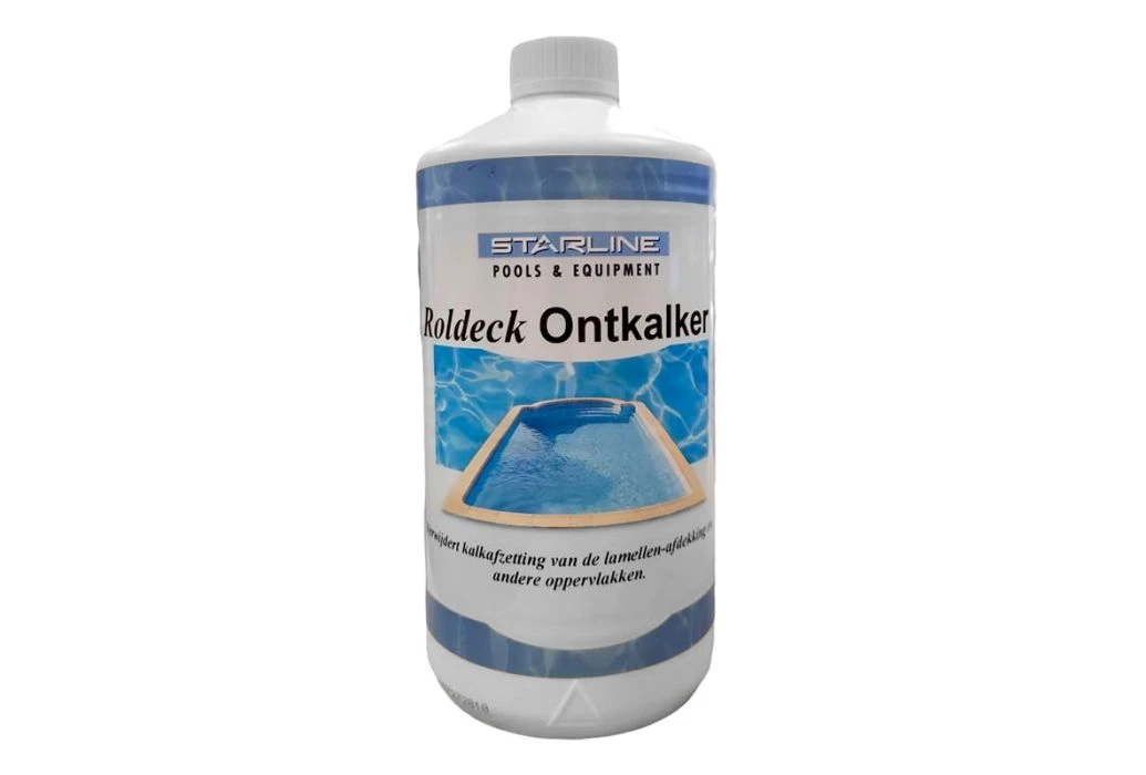 Om de lamellenafdekking, bodem en wanden van je zwembad in topconditie te houden raden wij je aan om je zwembad minimaal 2 keer per jaar te reinigen met de Starline Roldeck Ontkalker. Meer behandelingen kunnen voor een beter resultaat zorgen aangezien er door middel van meer behandelingen meer kalk aanslag verwijderd wordt.